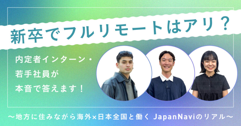 新卒でフルリモートはアリ?内定者インターン・若手社員が本音で答えます! ~地方に住みながら海外×日本全国と働く JapanNaviのリアル~