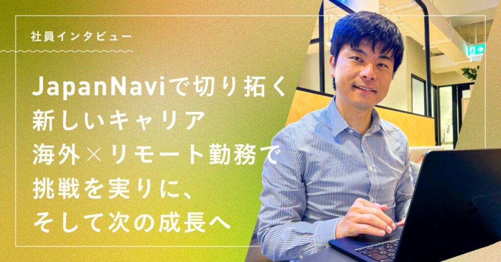初めてのリモート勤務やJapanNaviで働きたいと思った理由、会社の雰囲気、キャリアプラン、仕事のやりがいなどについてお伺いしました。